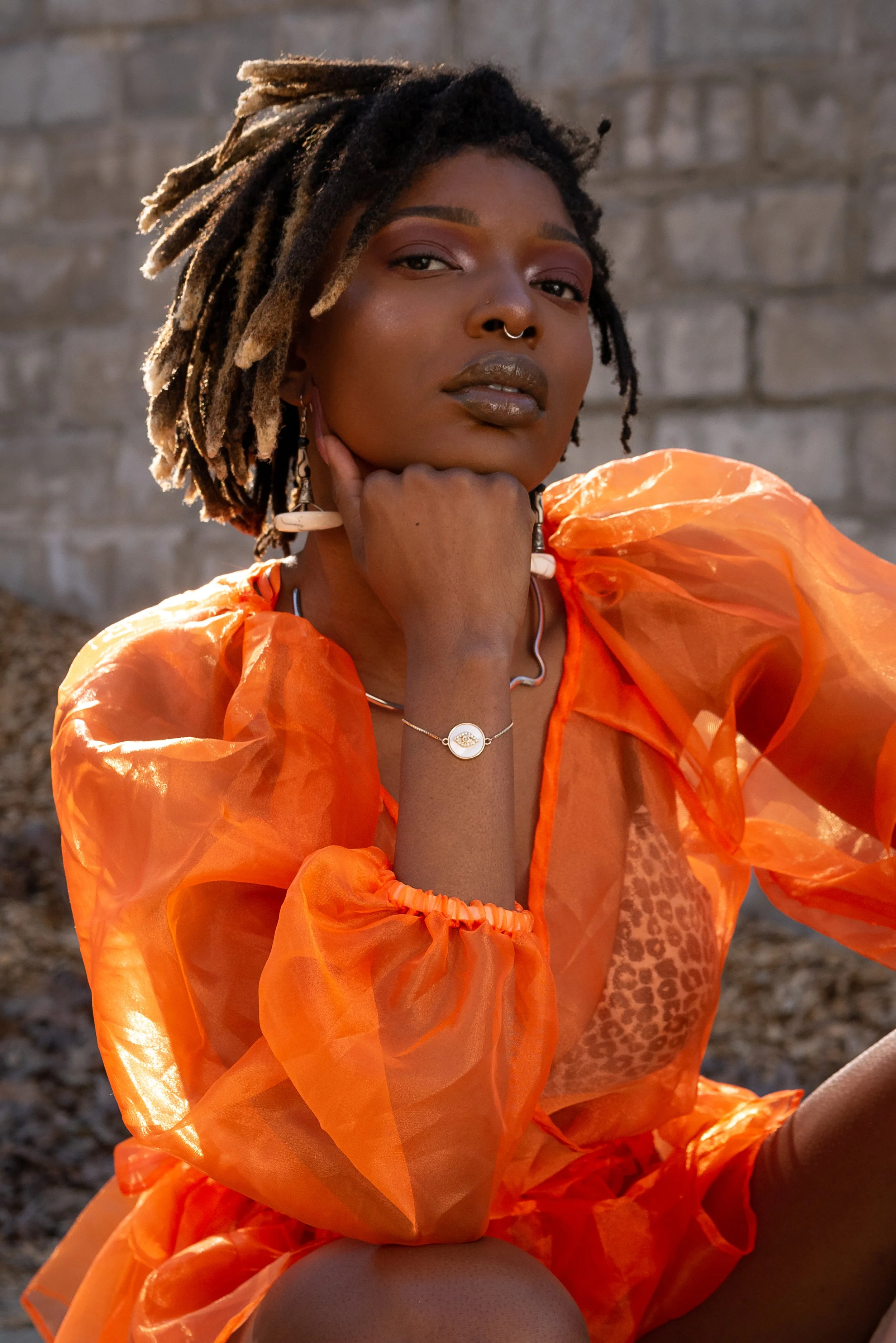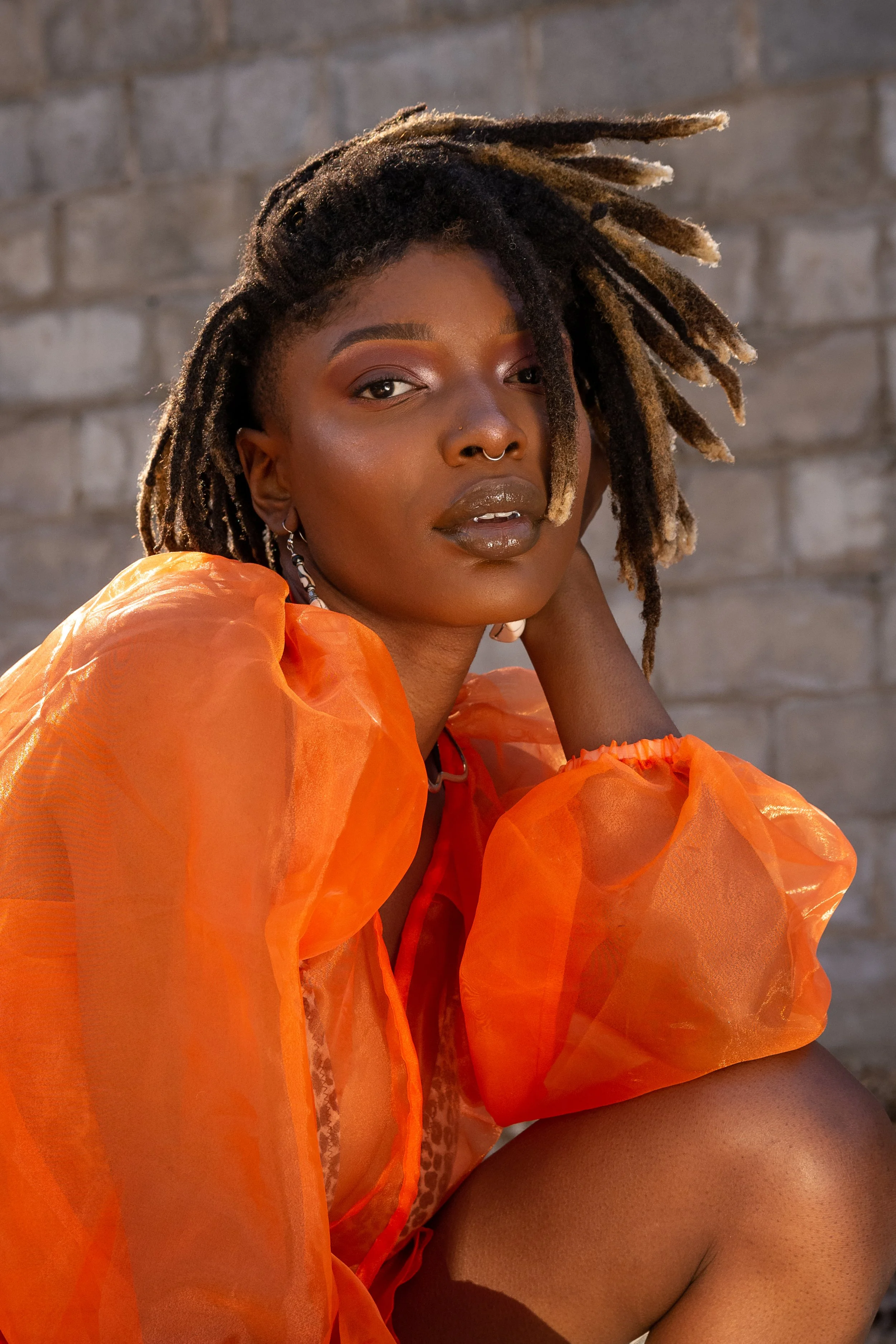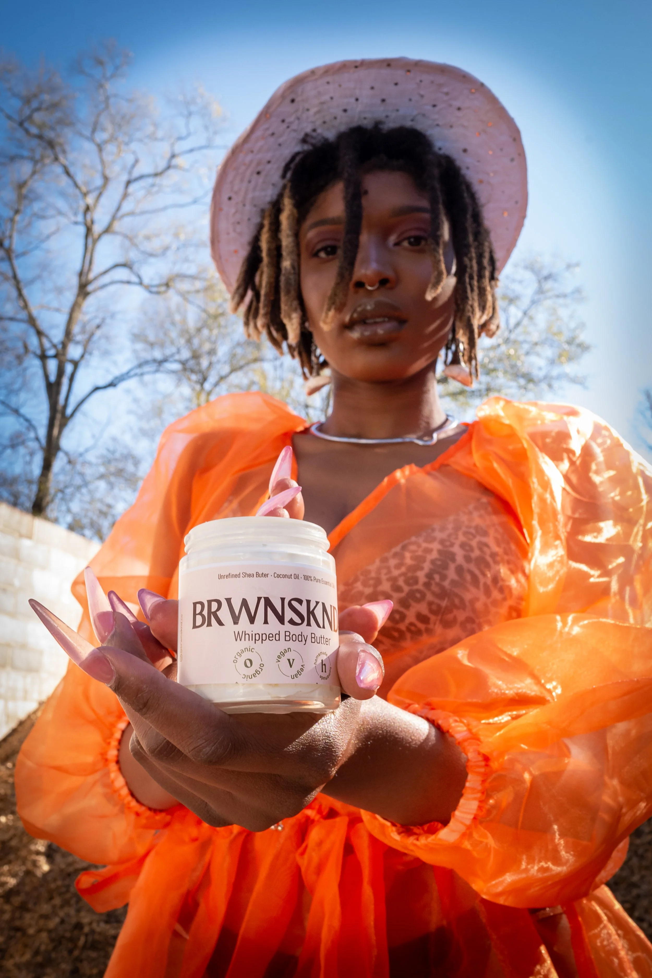 This is art from Brwnsknd Collective’s second modeled photoshoot featuring Jade (IG: @sayjadeee). This was a super chilly January day in a Baton Rouge park. Jade was so fun to work with and is truly a natural. I can barely find the words to describe this location. We found a small and secluded area filled with wood chips to make this vision come to life. There was a wall, a small incline, and the wood chips at her feet. Jade laced her tall white boots, and stood fiercely in this slightly hidden area. I worked the reflector while Tuck (IG: @Iamkingtuck) snapped away.
